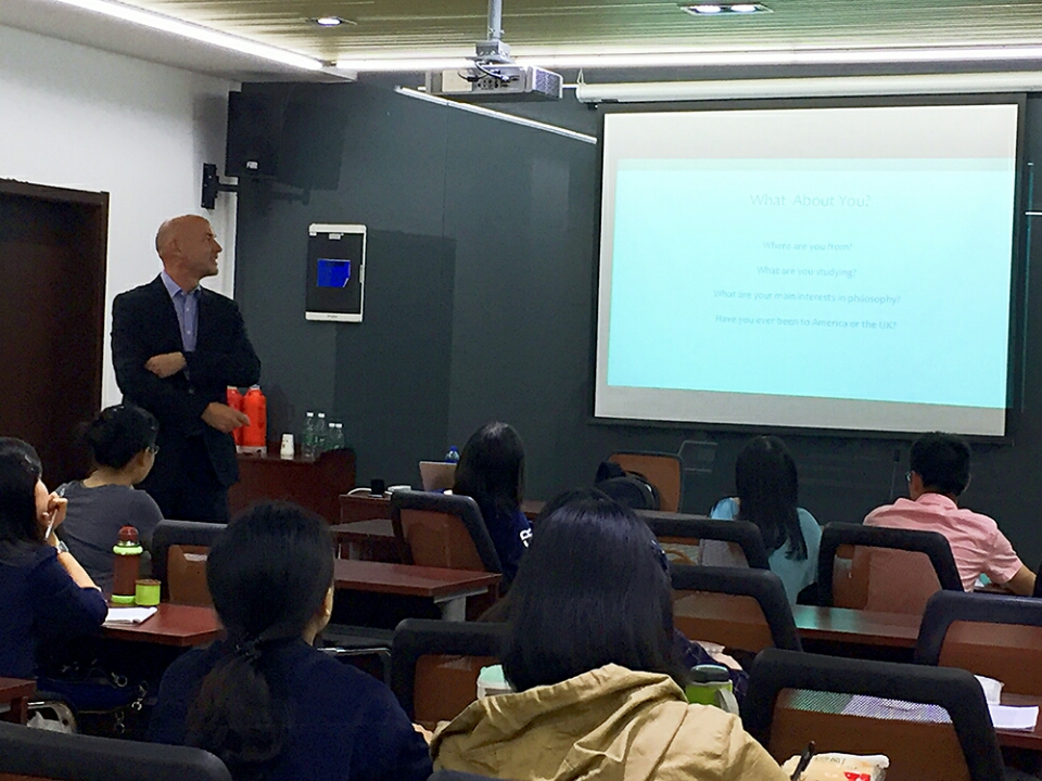 格林教授是美国著名哲学家,在知识论和科学哲学的研究成果为学术界所公认,具有较大影响。他开设的“Philosophy as a Way of Life”课程已经顺利进行了一周,不仅有来自我校哲学系的本科生选修了此门课程,该课程还吸引了包括兄弟院校在内的不少相关专业的研究生旁听。课程讲授过程中,格林教授积极鼓励同学们感兴趣的问题互动交流,效果良好。