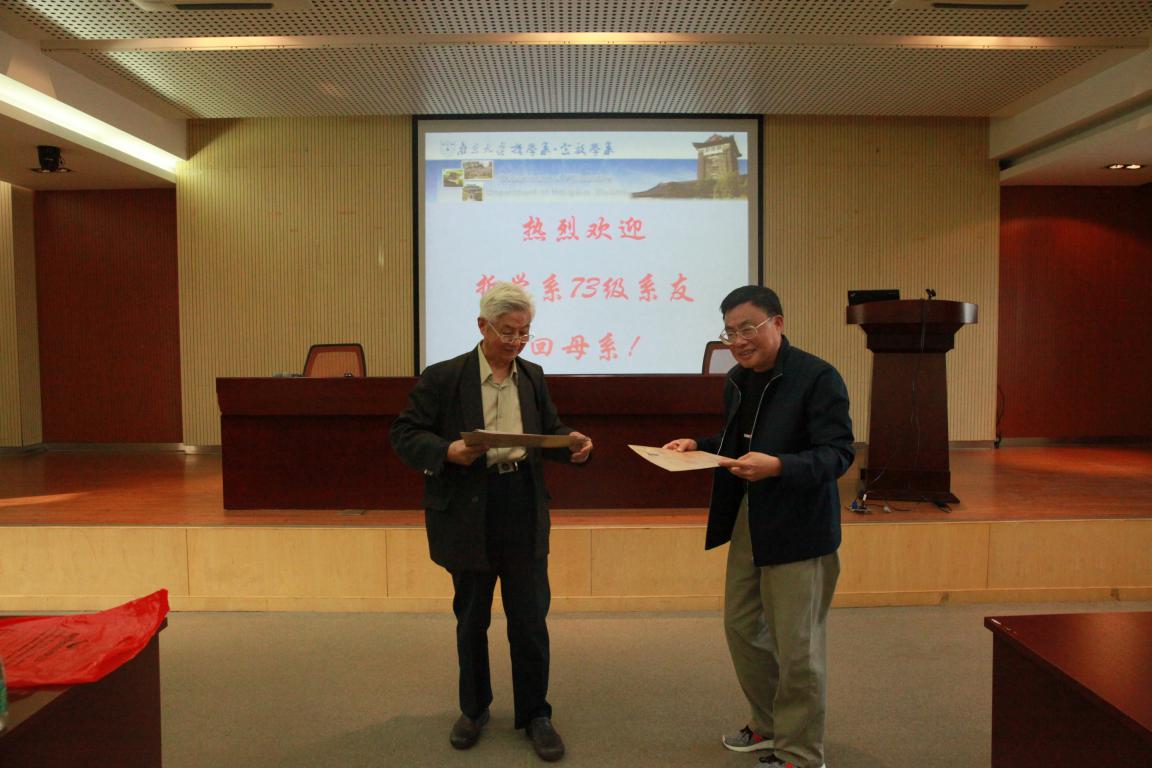 5月5日下午,我系在仙林校区哲学楼401报告厅举行座谈会,欢迎73级系友返校。系党委书记周爱群老师出席,系副主任李跃华老师主持座谈会。