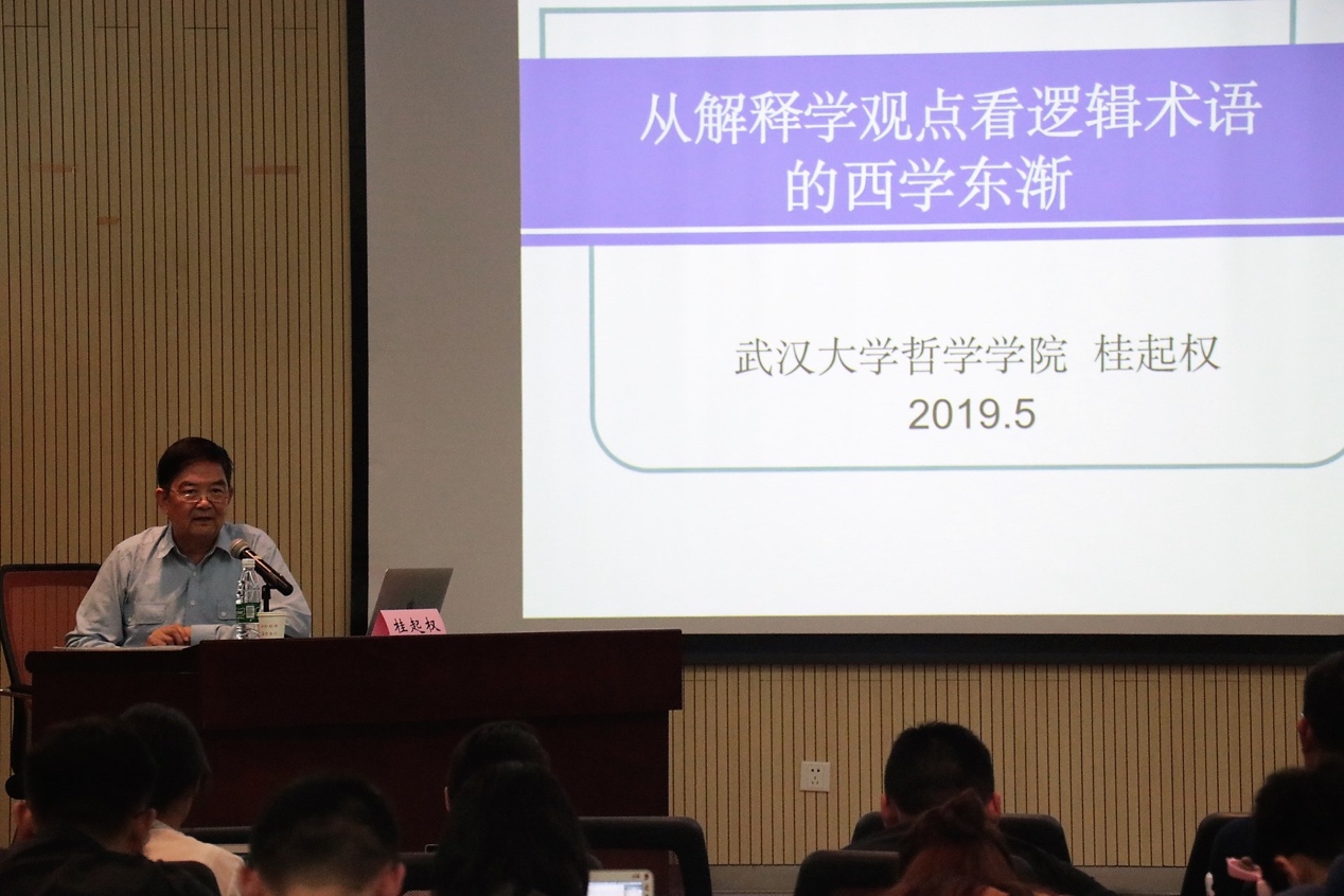 桂起权教授在哲学楼401报告厅做了题为“从解释学观点看逻辑术语的西学东渐”的学术讲座,这也是逻辑学科举办的“逻辑、语言与认知系列讲座”之一。讲座由哲学系顿新国教授主持,逻辑学、科技哲学等专业研究生及来自学校各院系师生聆听了此次讲座。