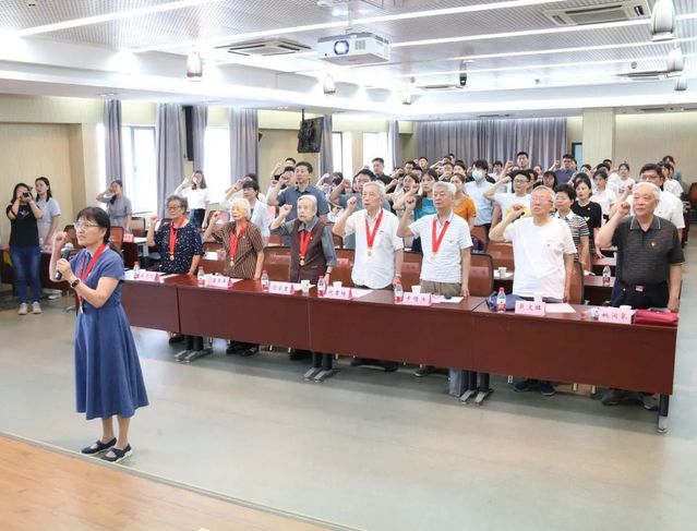 会议最后,退休教师支部书记伍玲玲带领全体党员重温入党誓词。