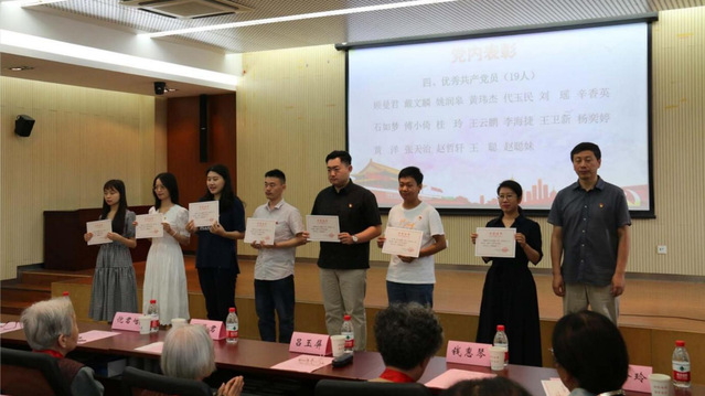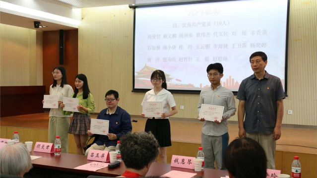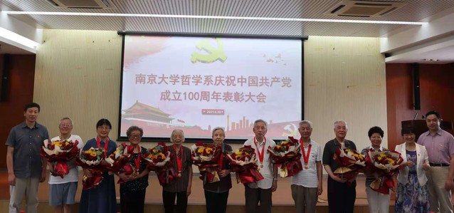 为热烈庆祝中国共产党成立100周年,表彰先进、树立标杆,激励哲学系各级党组织和广大党员师生进一步坚定理想信念、强化使命担当、奋发有为建功新时代,南京大学哲学系于6月30日隆重举行庆祝中国共产党成立100周年表彰大会。哲学系党委书记周爱群,哲学系党委副书记、系主任王恒,哲学系党委委员、副主任孙乐强,哲学系党委兼职组织员吴雨芳等出席会议。会议由哲学系党委副书记孟振华主持。“光荣在党五十年”纪念章颁发党员代表,获本年度系党委表彰的优秀共产党员、优秀党务工作者,各支部党员代表参加大会。