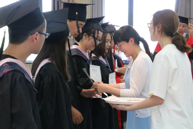 系党委副书记孟振华宣读优秀毕业生表彰决定,系党委书记周爱群、系主任王恒为虞若昀等22位优秀毕业生颁奖。系副主任刘鹏为“司肖肖-何静奖学金”获得者颁发荣誉证书。