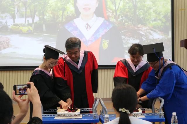 伴随着毕业歌《同一首歌》的旋律响起,毕业纪念视频在屏幕上播放。在充满青春回忆的旋律中,大家再温美好的南哲回忆;在饱含温馨祝愿的歌声里,教师代表徐小跃、孙亦平与学生代表陈妍秋、付泽裕共切蛋糕。