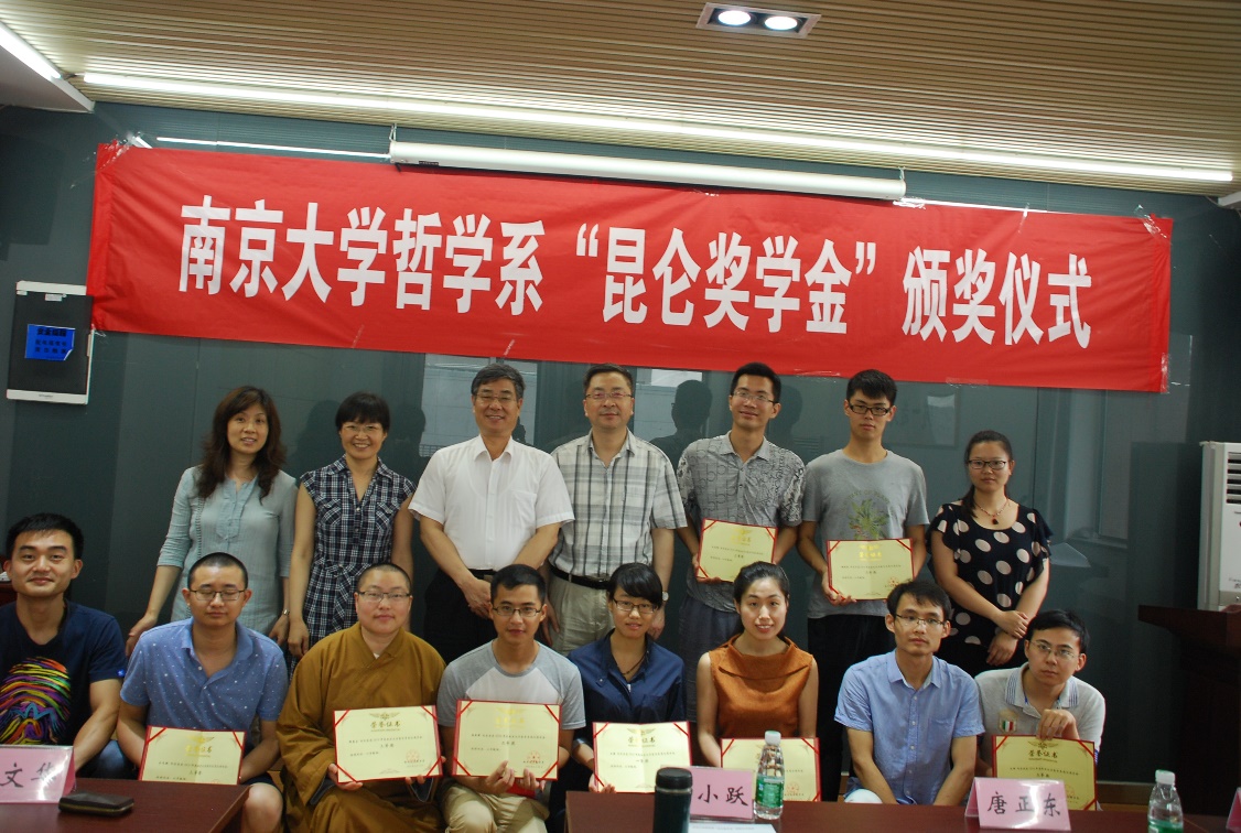 2016年6月15日,南京大学哲学系“昆仑奖学金”颁奖仪式在薛光林楼举行。南京大学哲学系主任唐正东、系党委书记周爱群、研究生辅导员郭明姬与捐赠方代表国家一级学会老子道学文化研究会常务副会长徐小跃等老师出席了颁奖典礼,仪式由沈文华老师主持。