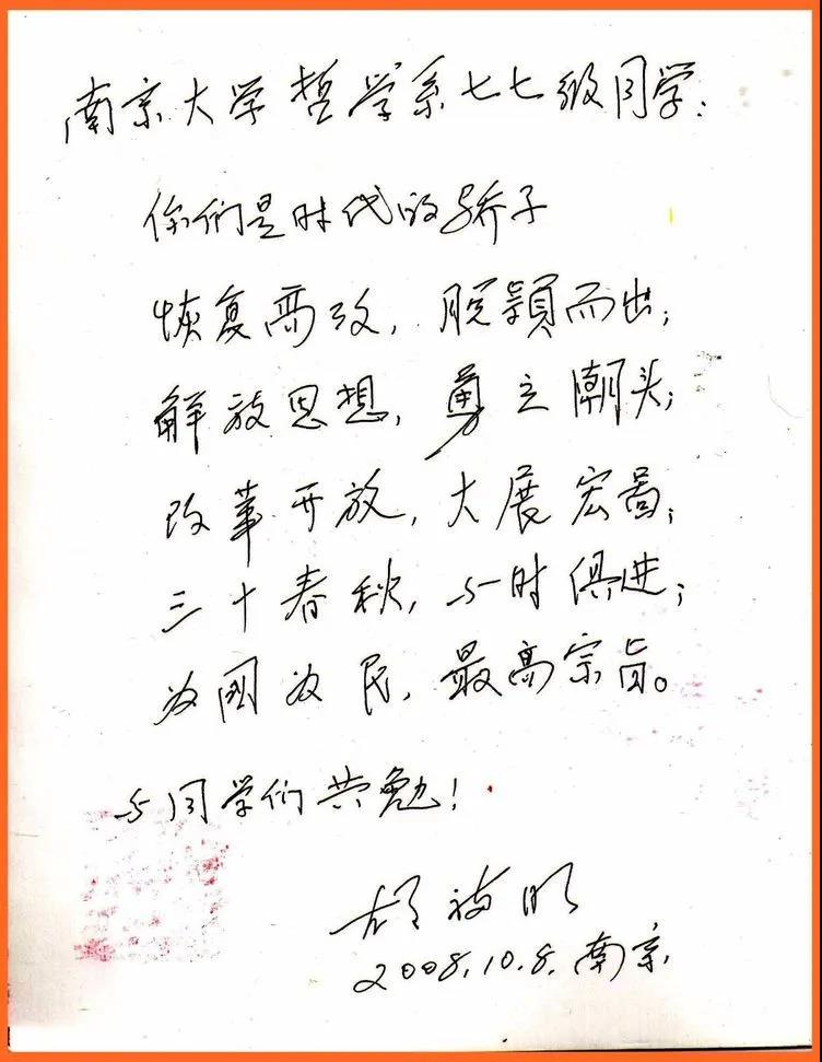 当然,我在哲学系的这10年间也经历了一些憾事。读大一时,学校曾对我班同学翁某拟给予开除处分,因情况不明、偏听当事人一面之词,我班很多同学与匡亚明校长正面冲突交锋,我也积极参与其中,惹得匡校长很恼火、胡老师很尴尬,事后证明我们有错,至今仍深感对不住匡校长。两位同班同学,一个是来自解放军南京高级步校、时任南大学生会主席的万圣荣,一个是才华横溢、毕业之际就在《中国社会科学(内部文稿)》上发文章的吴晓农,都因多年积劳成疾,在毕业后半年内相继离世,未能发挥出更多的光和热,甚是可惜。特别是中国社会学界泰斗、当时落难在哲学系的孙本文先生,在邓小平于1979年提出要“重建社会学”的前夕仙逝,终究没有能看到他所钟爱并做出奠基性贡献的社会学在祖国大地上重生,人生之憾,莫大于此。现在,南大社会澳洲幸运10计划 大厅里安放着孙先生铜像,以处于国内先进水平的社会学科建设成就,告慰孙先生的在天之灵!