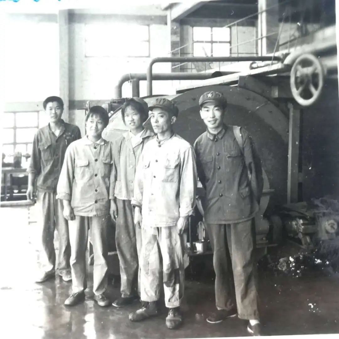 在南京汽车制造厂与工人师傅合影,右为徐立贵