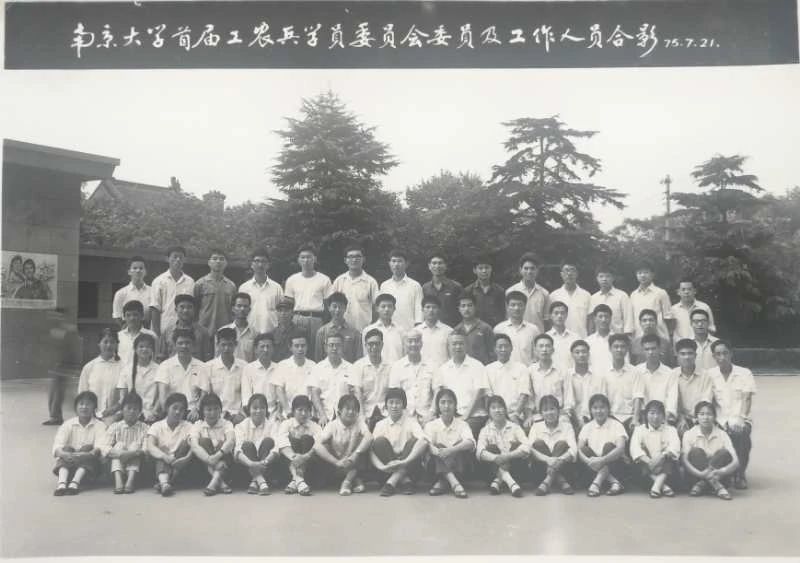 1975年7月与南京大学首届工农兵学员委员会委员及部分工作人员合影。二排右起第六位是徐立贵。