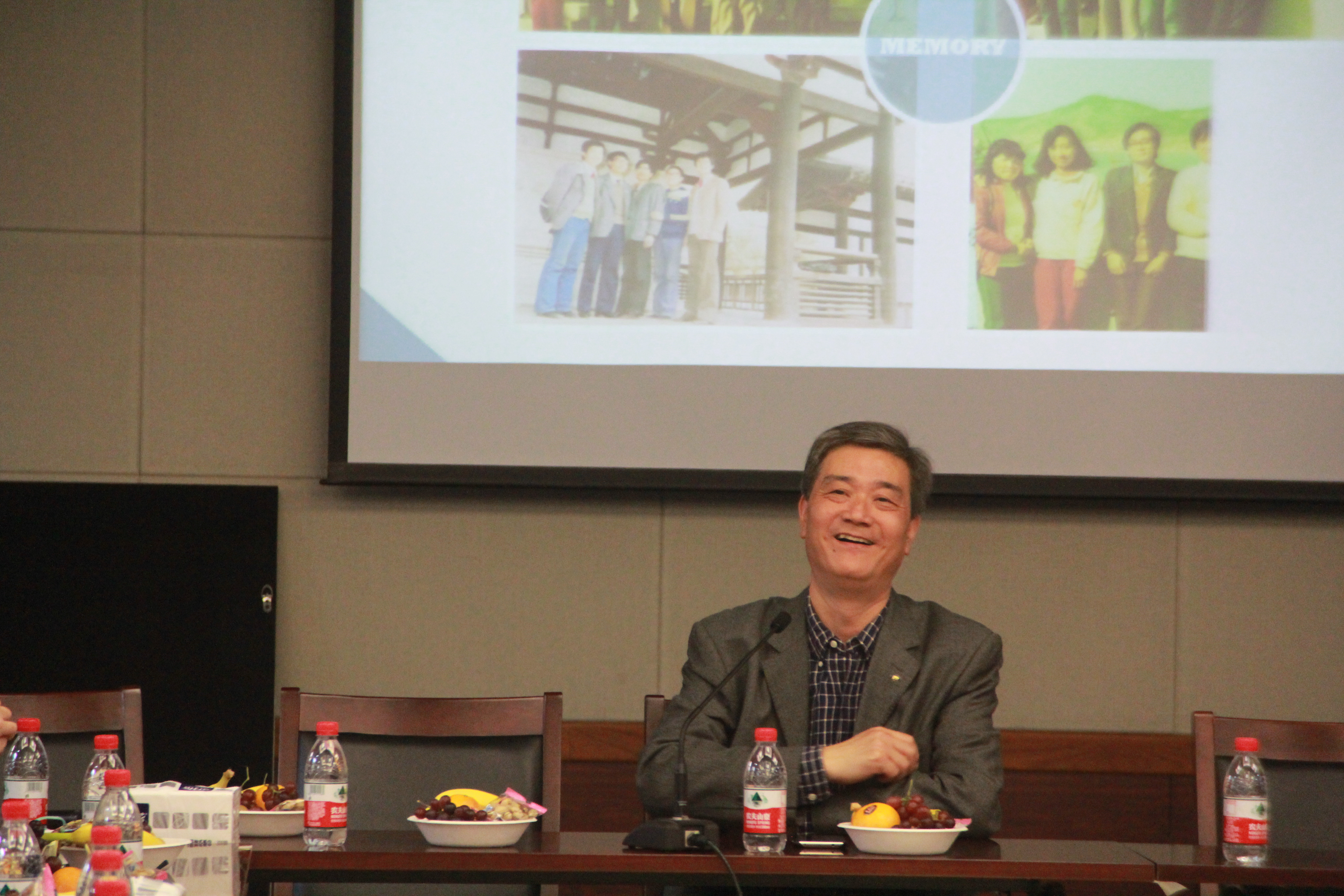 下午三点半,座谈会在陆江兵主持下顺利进行。座谈伊始,大家先观看了南哲为系友精心制作的PPT,沉浸在照片背后的岁月和回忆中。光阴岁月逝去,但终究不会消失的是让大家凝聚在一起的南哲的纽带。陆老师简洁地进行了开场白。他说道:“本次聚会正值党的十九大召开之际,在改革开放最重要的这三十多年,国家取得了重要成就。在这金秋收获时节,同学们也都在人生中做出了自己的贡献并实现了自己的价值。感谢大家的参与,让本次聚会有一种的亲切的氛围,仿佛回到了从前。”