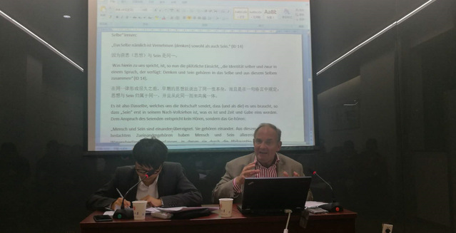 10月26日晚,应南京大学哲学系、南京大学现象学研究所邀请,德国艾希施泰特-因戈尔施塔特大学哲学系教席教授瓦尔特•施瓦德勒(Walter Schweidler)先生在哲学楼314会议室为哲学系师生带来了题为“同一与差异——后期海德格尔对当代法国哲学的意义”的精彩讲座。四川大学的贺念博士为本次讲座进行了辛苦的现场翻译。此次讲座属于现象学研究所发起的“现象学名家系列讲座”之一,由哲学系张荣教授主持,王恒教授、马迎辉副教授以及校内外四十余位同学现场聆听了讲座。