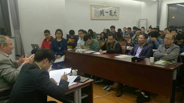 在两个小时的精彩演讲之后,围绕着老生常谈的“主客模式”还值不值得作为当下思想始终要针对的靶子、“分解”与“区分”两个概念之间的差别、现象学在德国思想界的当下境况等问题,施瓦德勒教授与在座的师生之间展开了热烈而深入的交流讨论。