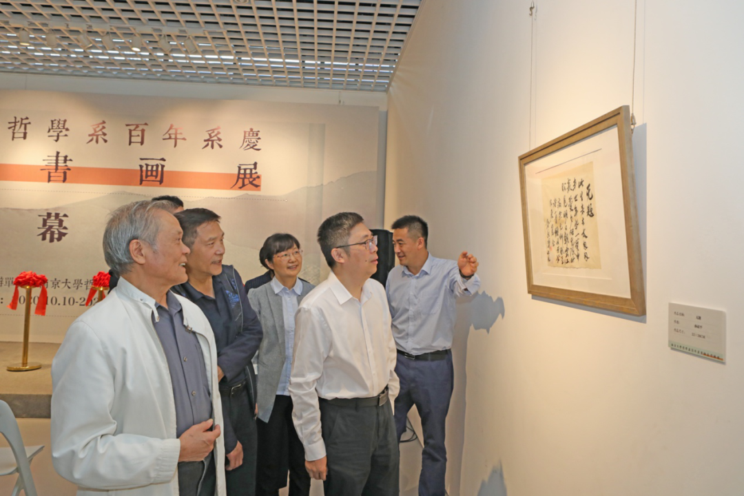 1010日上午10时,南京大学哲学系百年系庆师生书画展正式开展。出席开展仪式的的领导嘉宾有:南京大学副校长陆延青先生,南京大学人文社科资深教授赖永海先生,南京大学地理与海洋科学澳洲幸运10计划 张捷教授,哲学系79级本科系友、原《新华日报》副总编刘文平先生,南京大学美术馆馆长史梅女士,南京大学社科处副处长刘颖女士,南京大学哲学系系主任王恒教授,南京大学哲学系党委书记周爱群女士,南京大学出版社杨小民先生,参展艺术家吴显华先生、于桂林先生等。开展仪式由哲学系副主任李跃华老师主持。