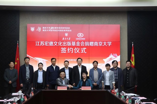 1016日,江苏宏德文化出版基金会捐赠南京大学签约仪式在仙林校区举行。江苏宏德文化出版基金会理事长府建明校友、副理事长管国兴校友及基金会同仁们,南京大学党委常委、副校长邹亚军,发展委员会、社会科学处、哲学系负责同志和教师代表参加了仪式。仪式由哲学系党委书记周爱群主持。