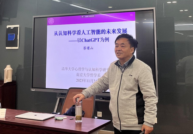 应南京大学哲学系和南京大学当代智能哲学与人类未来研究中心邀请,清华大学心理学系教授、清华大学心理学与认知科学研究中心主任蔡曙山教授,于2023年11月24日晚在南京大学哲学系314室做了题为“从认知科学看人工智能的未来发展”的学术讲座。此次讲座由南京大学哲学系教授、南京大学当代智能哲学与人类未来研究中心主任顿新国教授主持,南京大学哲学系教授、南京大学现代逻辑与逻辑应用研究所所长张建军教授担任讲座评论人,南京大学哲学系王克喜教授和逻辑学专业及其他各院系同学共同参与此次讲座。