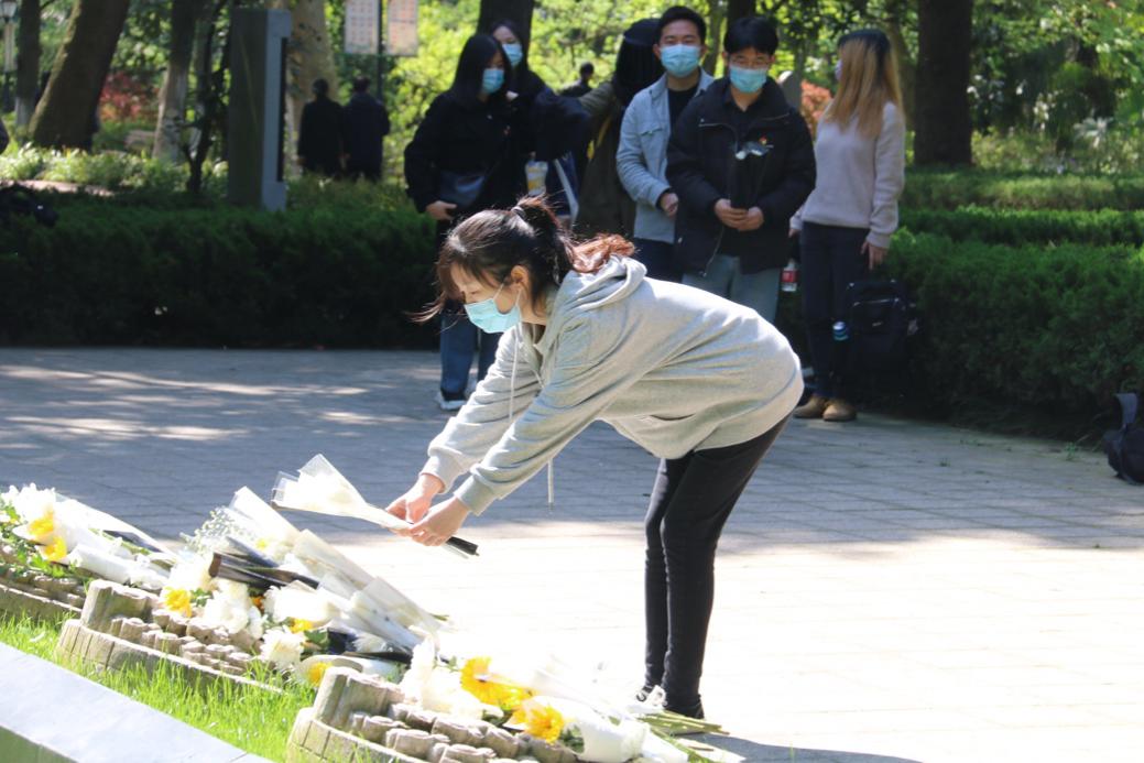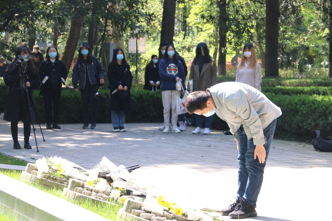 全体同学依次献上鲜花并深深鞠躬,以表对革命先烈们的悼念与缅怀,告慰英烈之魂。
