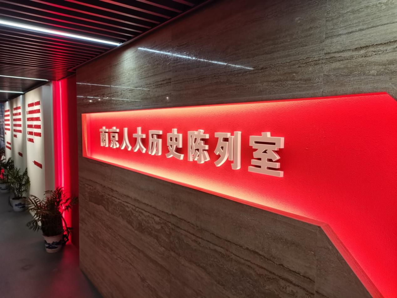 南京人大历史陈列室位于南京市人民政府办公楼内,紧临鸡鸣寺和明城墙,风光秀美。陈列室落成于2019年,面积500余平方米,展陈分历史沿革、职权行使、代表工作、交流交往、自身建设等5个部分,每个部分配有图文、实物、视频等珍贵史料。它展现了1949年南京解放70多年来南京市党委落实和健全人民代表大会制度、带领人民当家作主的历史过程,是新中国成立以来党和国家政治制度不断发展完善的历史缩影,也是中国共产党实现中华民族和中国人民面貌焕然一新的集中反映。