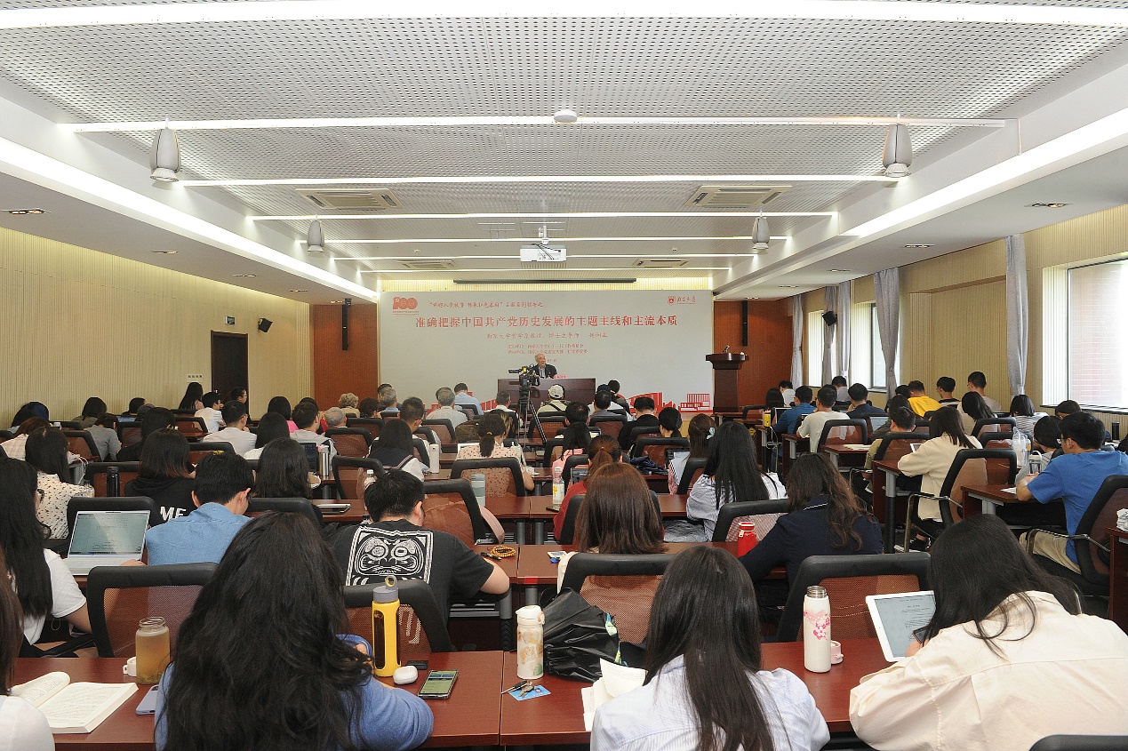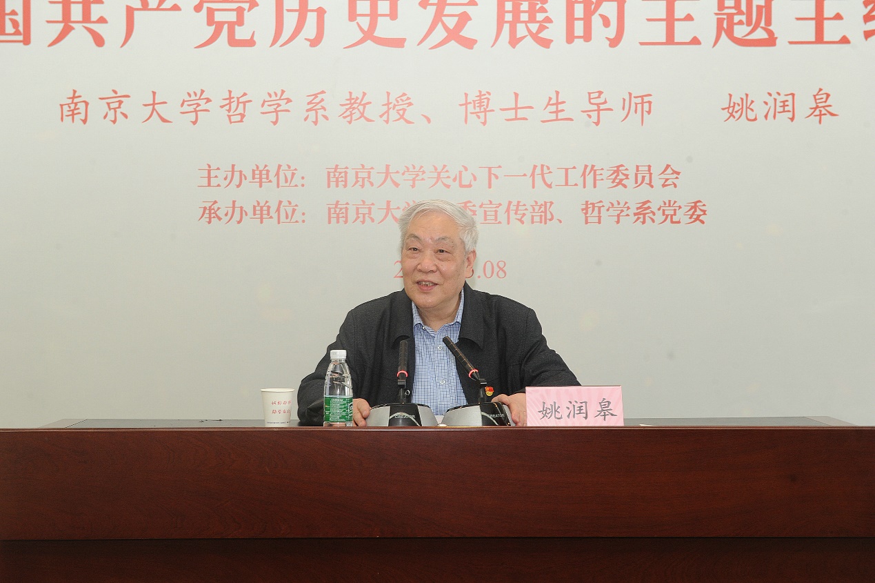 5月8日下午,南京大学哲学系教授、博士生导师,原南京大学党委常委、宣传部部长姚润皋在哲学系楼401报告厅作了一场题为“准确把握中国共产党历史发展的主题主线和主流本质”的报告。这是“讲好入党故事,传承红色基因”主题系列报告之一,由南京大学关心下一代工作委员会主办,南京大学党委宣传部、哲学系党委承办。校党委常委、宣传部部长陈云松,校关心下一代工作委员会常务副主任王晓如,老干部党委书记、离退休工作处处长吴珩出席报告会。哲学系党委书记周爱群主持报告会。