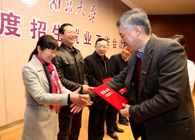 12月15日下午,我校举行2015年度招生、就业工作会议,总结2015年度招生就业工作,研讨招生、就业工作新形势、新任务,表彰在招生和就业工作中表现突出的先进集体和个人。本年度,我系荣获“南京大学招生工作先进集体”称号;郭明姬老师荣获 “南京大学招生工作先进个人”称号,并获校就业创业指导中心通报表扬。