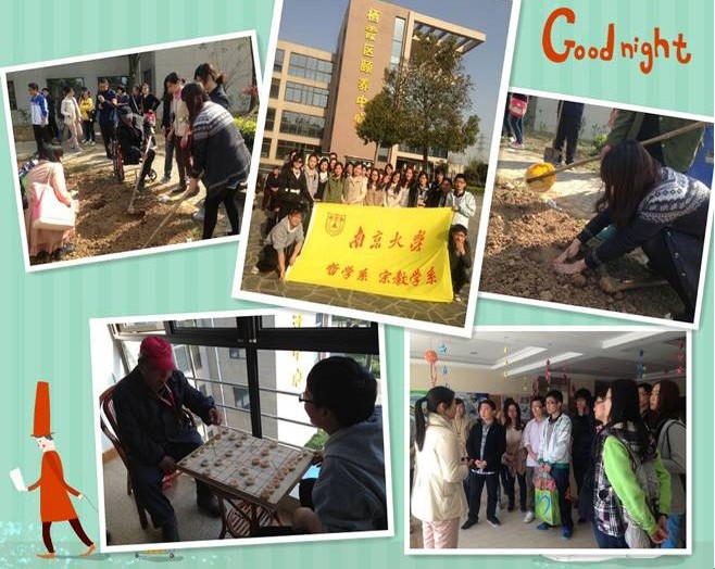 4月10日,哲学系志党员,青协愿者们将前往由爱德基金会支持的南京栖霞区颐养中心开展了包括:社工带领参观养老院,种植盆栽,陪老人下棋,踢球,聊天等丰富的活动,我系本科生党支部,青协同时还与院长,社工部主任等负责人达成共建长期志愿者和党员服务基地的意向。